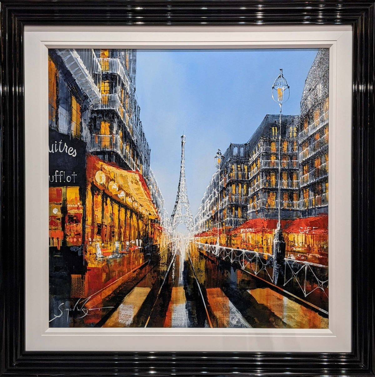 A fantastic Paris view with the Eiffel Tower taking centre stage. Simon Wright's cityscapes show his signature expressive approach of various mark-making techniques with thick paint, and contrasting areas of softer washes. There are influences of both Impressionism and Abstract Expressionism but with a clear fresh, contemporary approach.