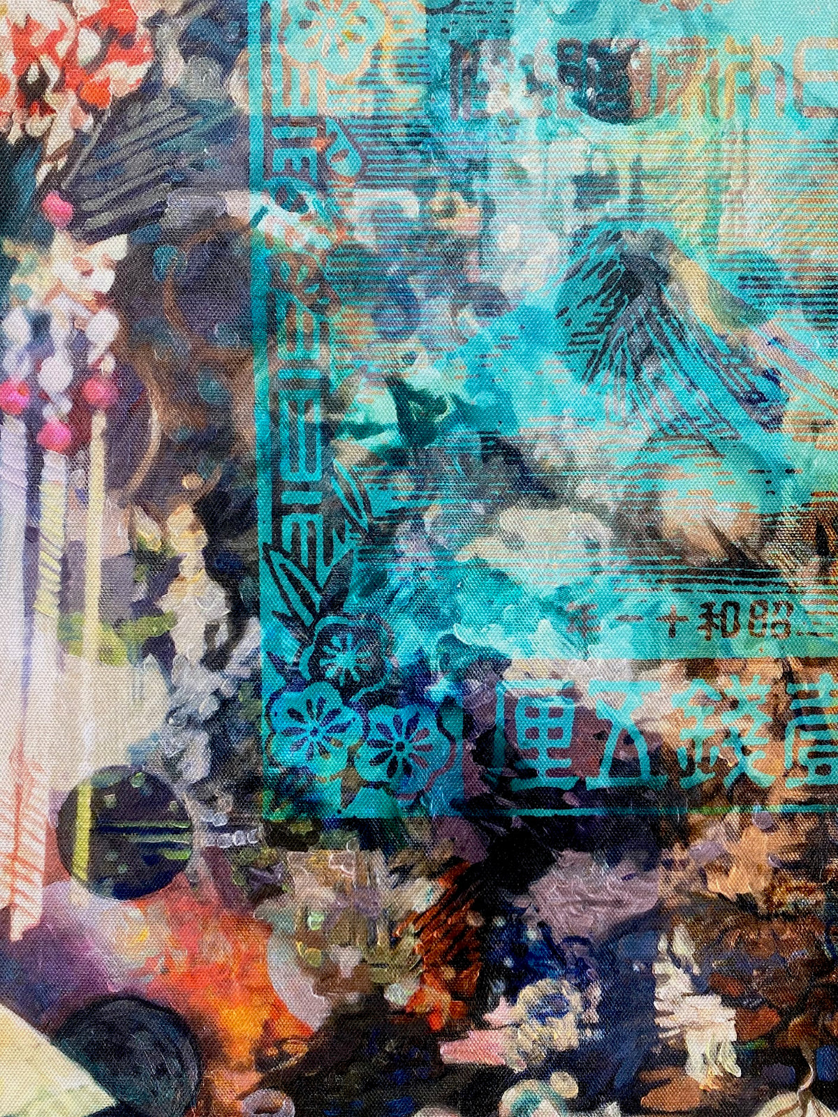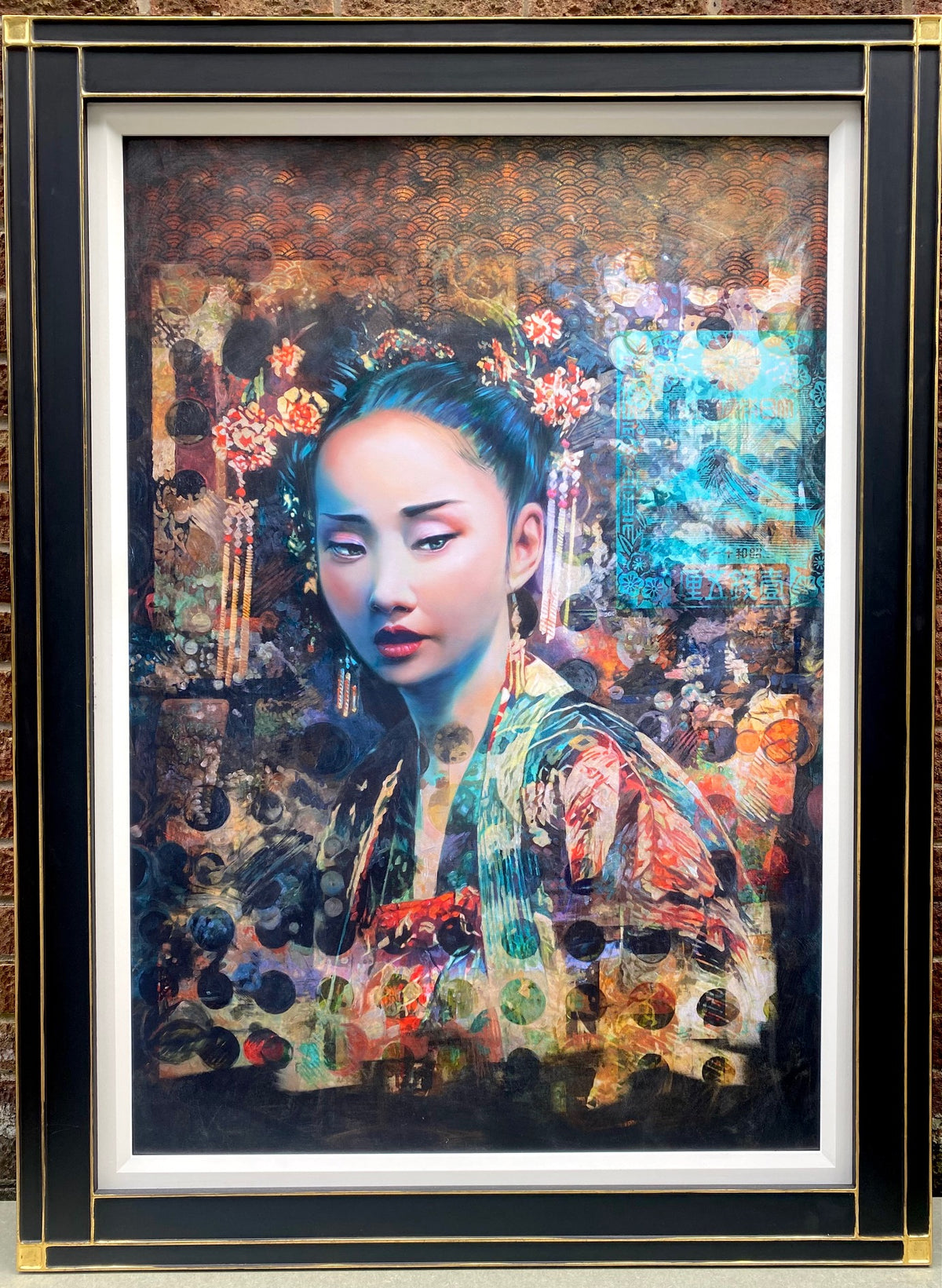 An exclusive full sized print from the artist’s original oil painting. A beautiful painting of a Japanese geisha which combines the traditional with the contemporary. It is rich in harmonious colour and texture with layers of painting techniques including areas of stencilled motifs and pattern.