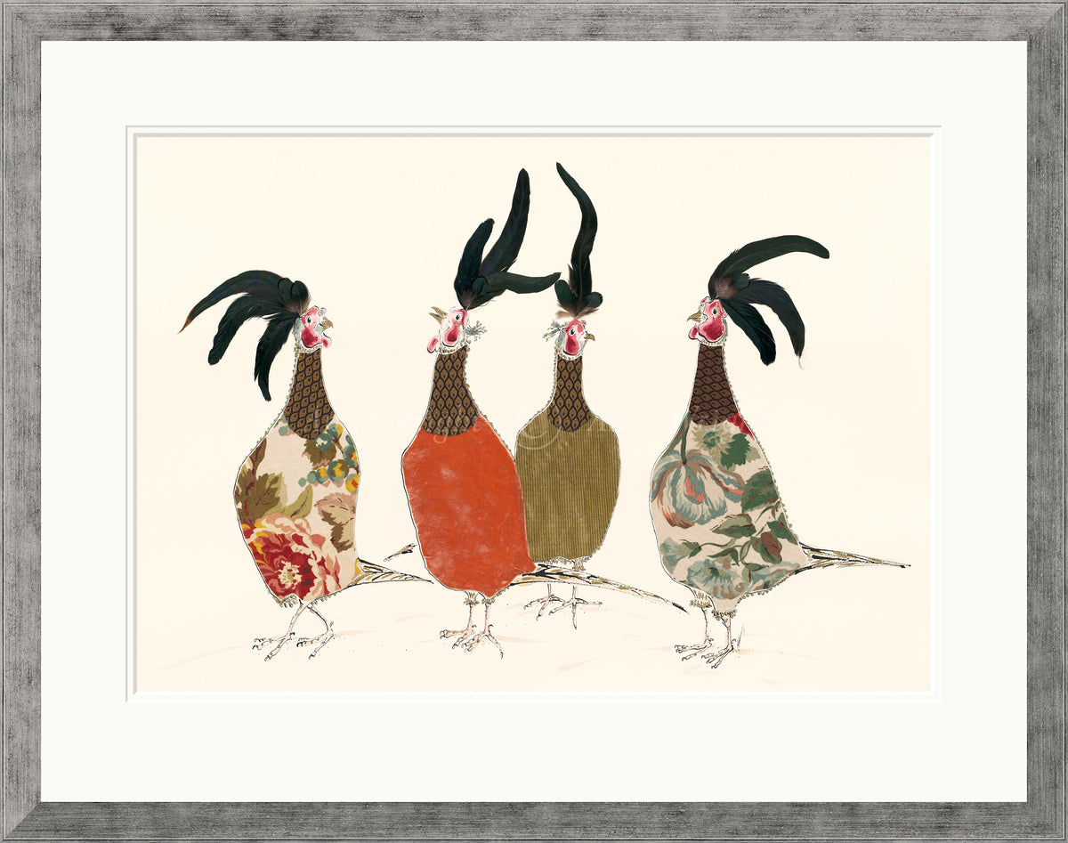 A perfect title to match a group of hens gathering for a chat. A print taken from her original artwork where Anna combines her signature pen work, watercolour, collaged fabric and feathers.