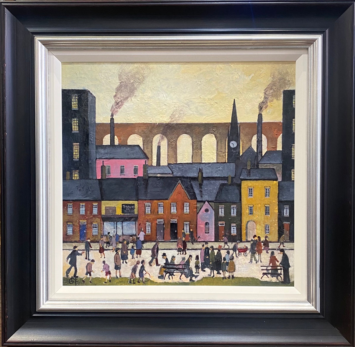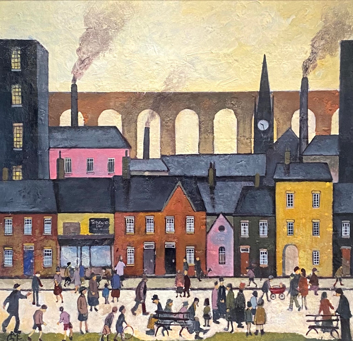 Inspired by the industrial neighbourhoods of Lowry's time, Gary chooses scenes of Greater Manchester which Lowry did not paint and applies harmonious colour palettes.