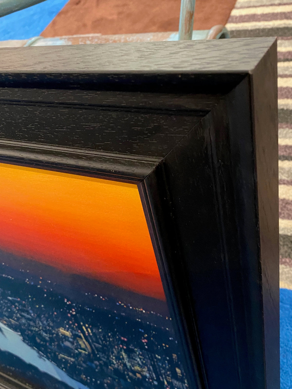 Framed in a black woodgrain moulding.