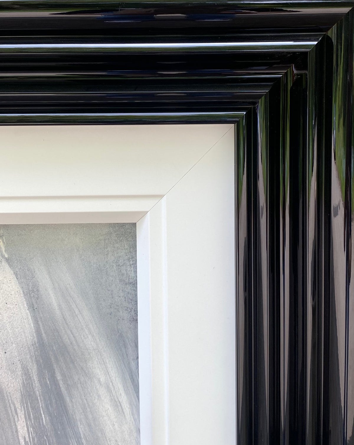 Double framed with a flat white slip and ridged back gloss outer moulding