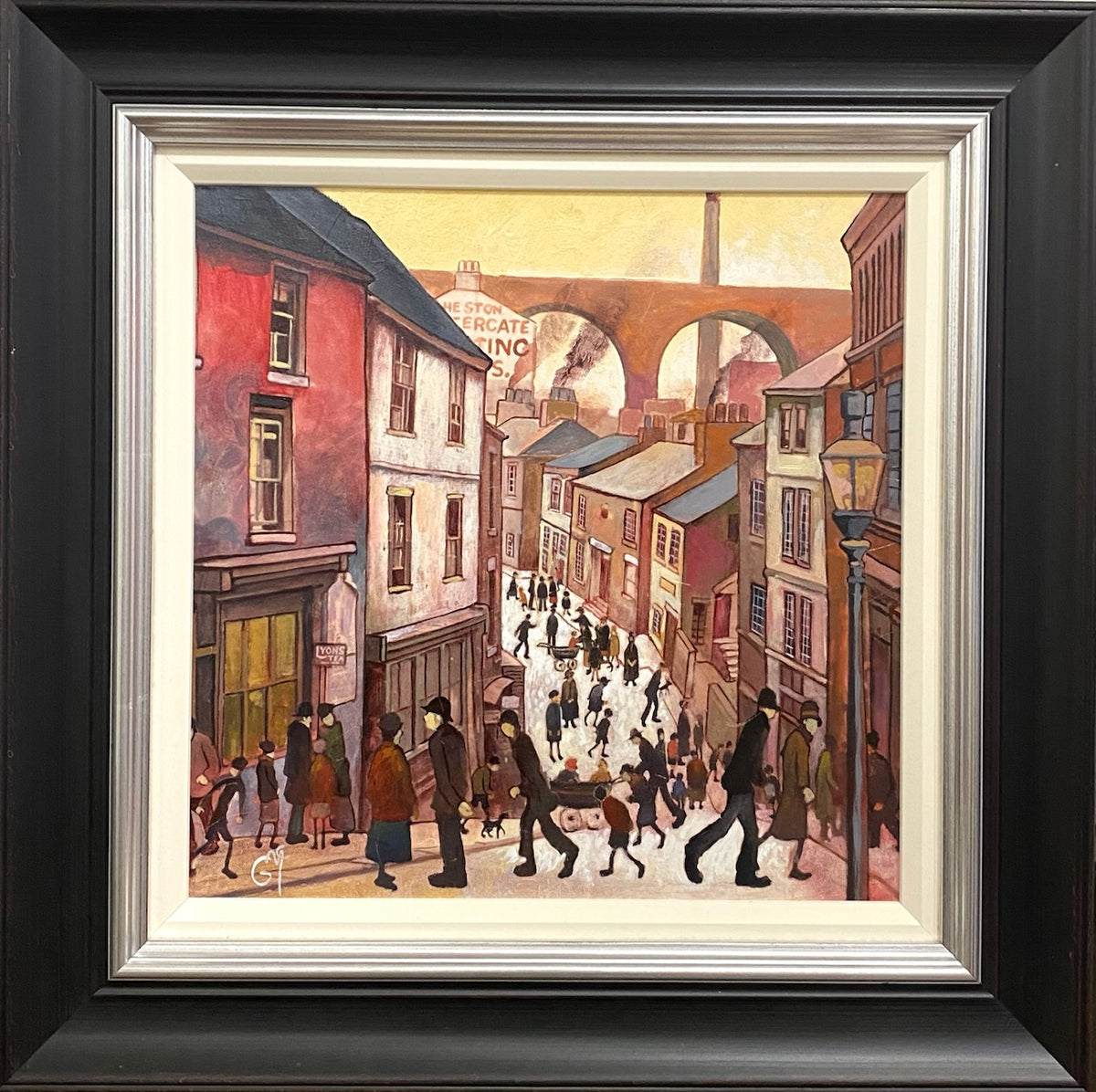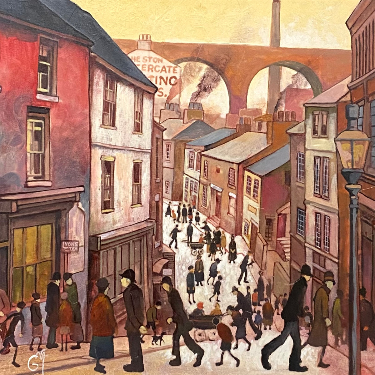 Inspired by the industrial neighbourhoods of Lowry's time, Gary chooses scenes of Greater Manchester which Lowry did not paint and applies harmonious colour palettes