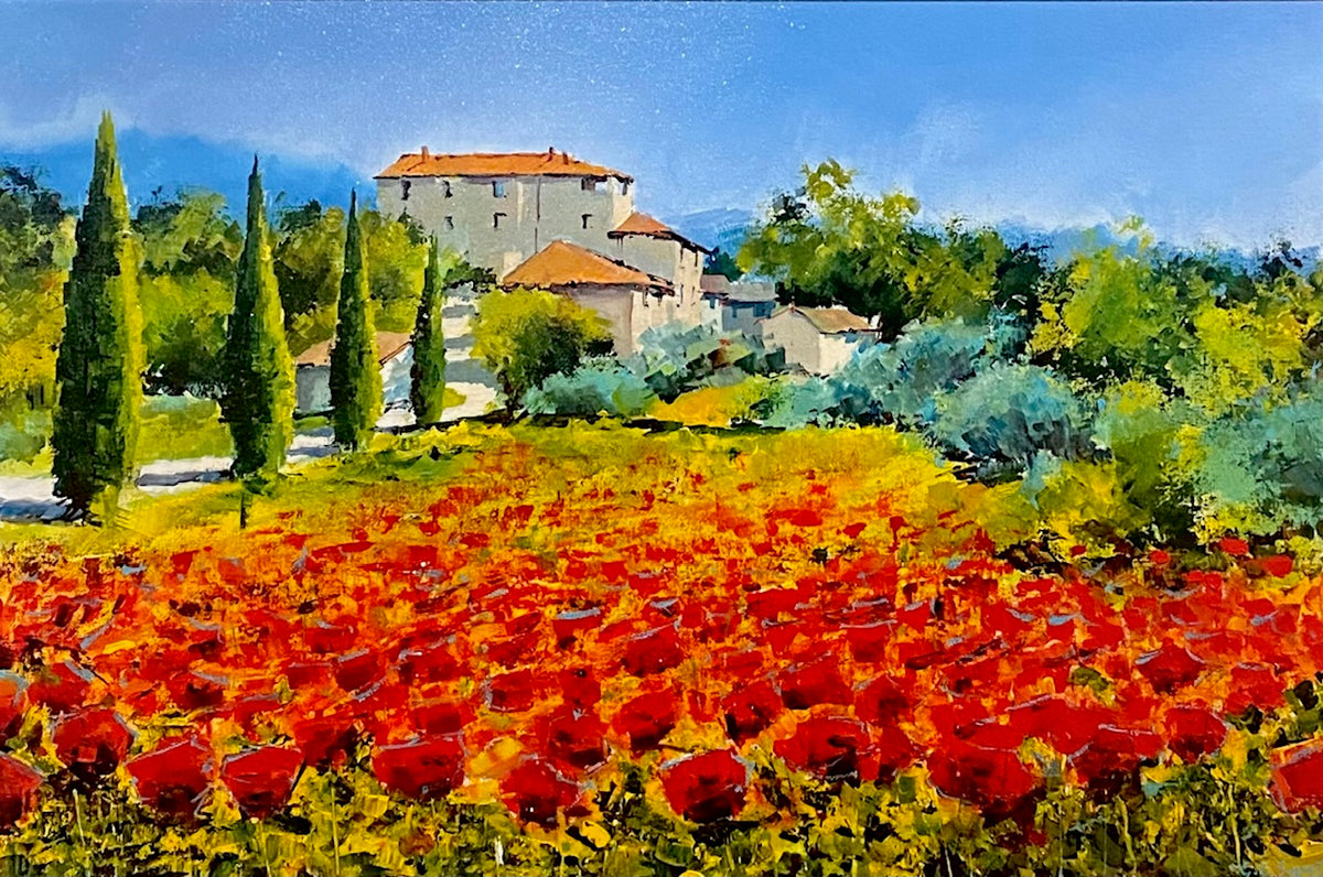 The bold bright saturated colours completely transport you to this typical Tuscan landscape scene.