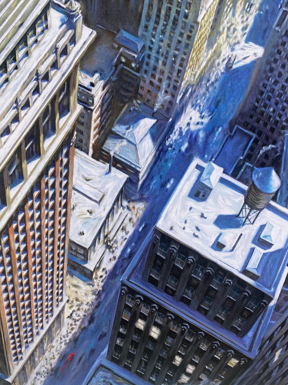 A print taken from James' original painting from his New York cityscape series which explore hair-raising viewpoints and unusual perspectives. Can you spot the ubiquitous red Ferrari?