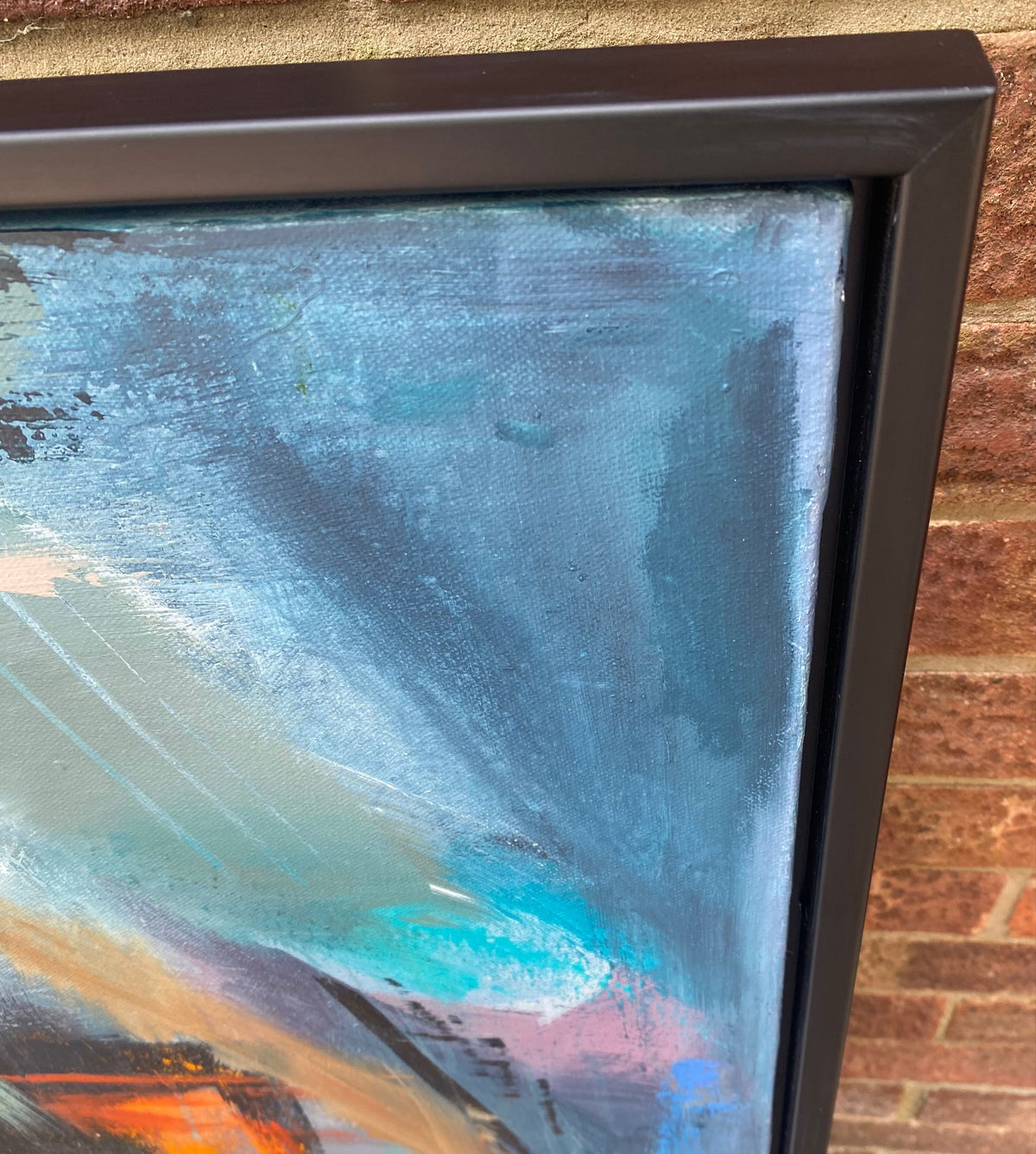Float framed in a smooth matte black moulding.