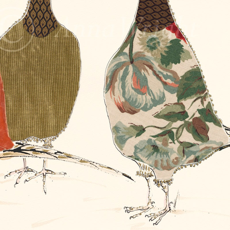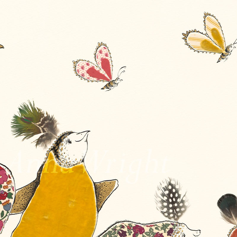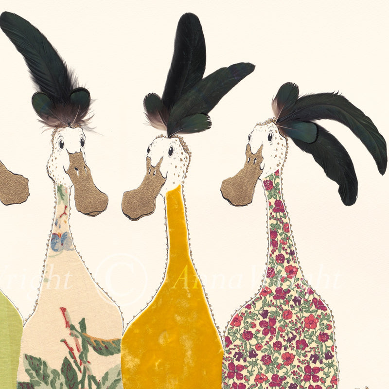 Combining collage, fabrics, ink and paint, Anna creates playful depictions of animals and wildlife with matching titles that capture a delightful sense of humour. With the skill of finding harmonious balances of block colour and pattern, it is no surprise that her work is widely collected across the UK.