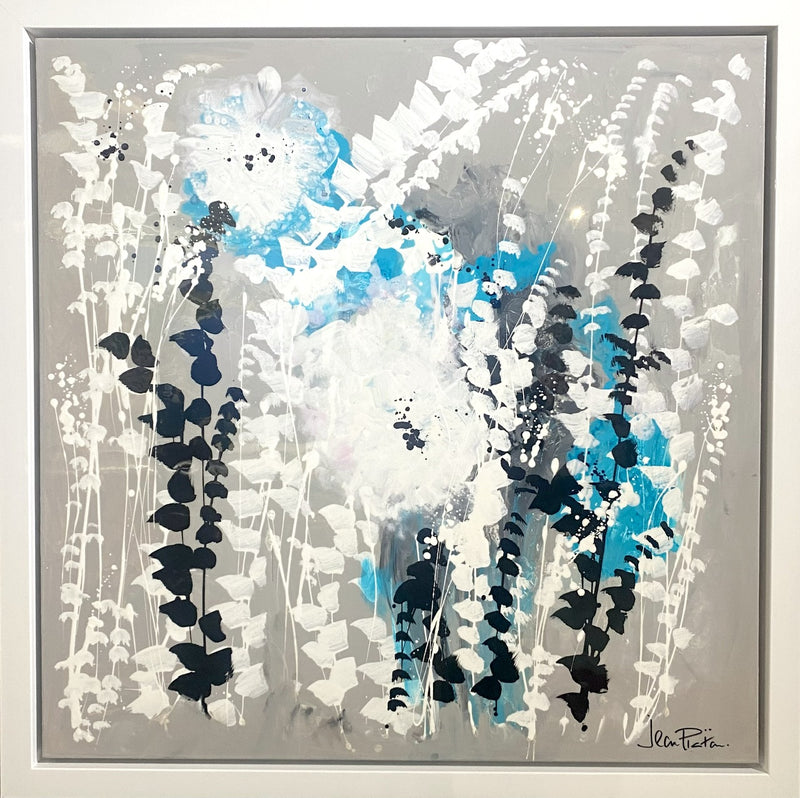 She has moved through various phases in her development from minimalist poppy images to more complex structured paintings, exploring a deeper resonance of colour. Jean visited India in 2011 which left a lasting impression on her. The intense colours she saw around her challenged her thinking as to how she could replicate the importance of the relationship of colours to each other thus creating movement on canvas.