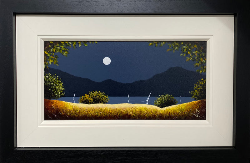 The paintings are often composed of vast dark skies which he contrasts with highly textured foregrounds. Despite this remote subject matter, the strip of lighting John applies to the foreground offers a contrasting comforting glow. John combines traditional subject matter with a contemporary, fresh approach creating paintings which are becoming more and more sought after.