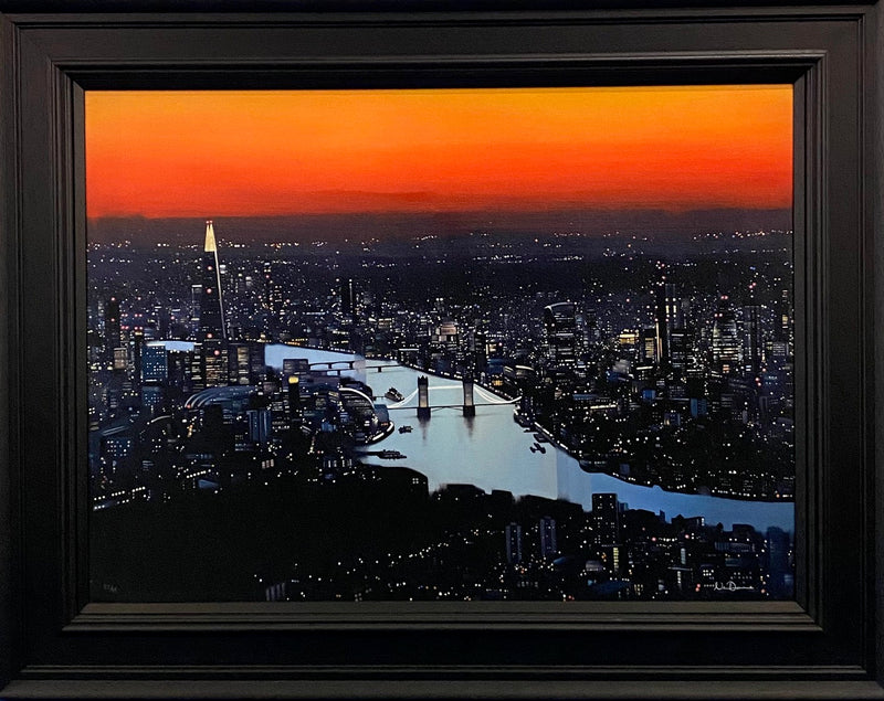 Reading newspapers when he was younger and seeing images of faraway cities on TV instilled a passion for travel, which in turn became a spring board to creating his stunning artworks. Experiencing new cultures and surroundings, he photographed prolifically and returned home to create amazing and vibrant international cityscapes which were part of his own life experience. In addition to London these cities include Edinburgh, Paris, New York, Sydney and Venice. Painting in oil, the moods of his work changes from vibrant and dramatic to calm and serene as days unfold into night.