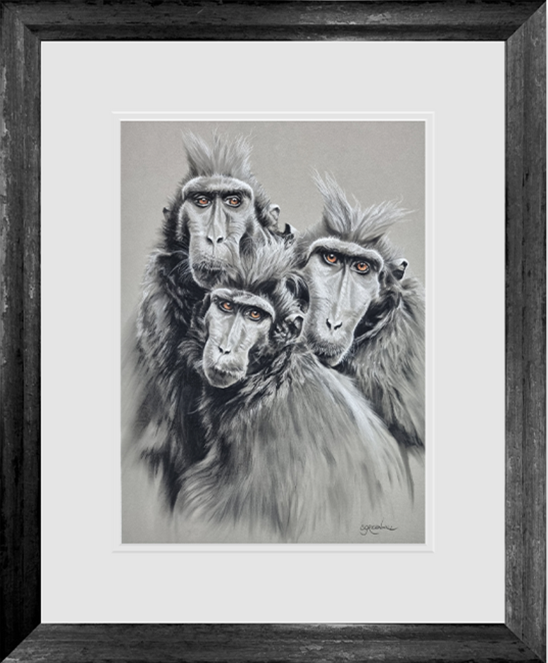 To source imagery to work from, Samantha carefully selects photographs that inspire her that are taken by some of the world's top wildlife photographers. After creating preliminary sketches, she then draws the composition on to board and creates an underpainting to establish the tones and then gradually builds layers of pastel with different types of mark-making to represent the textures of the animals fur; the whole process can take around 100 hours for a large painting.