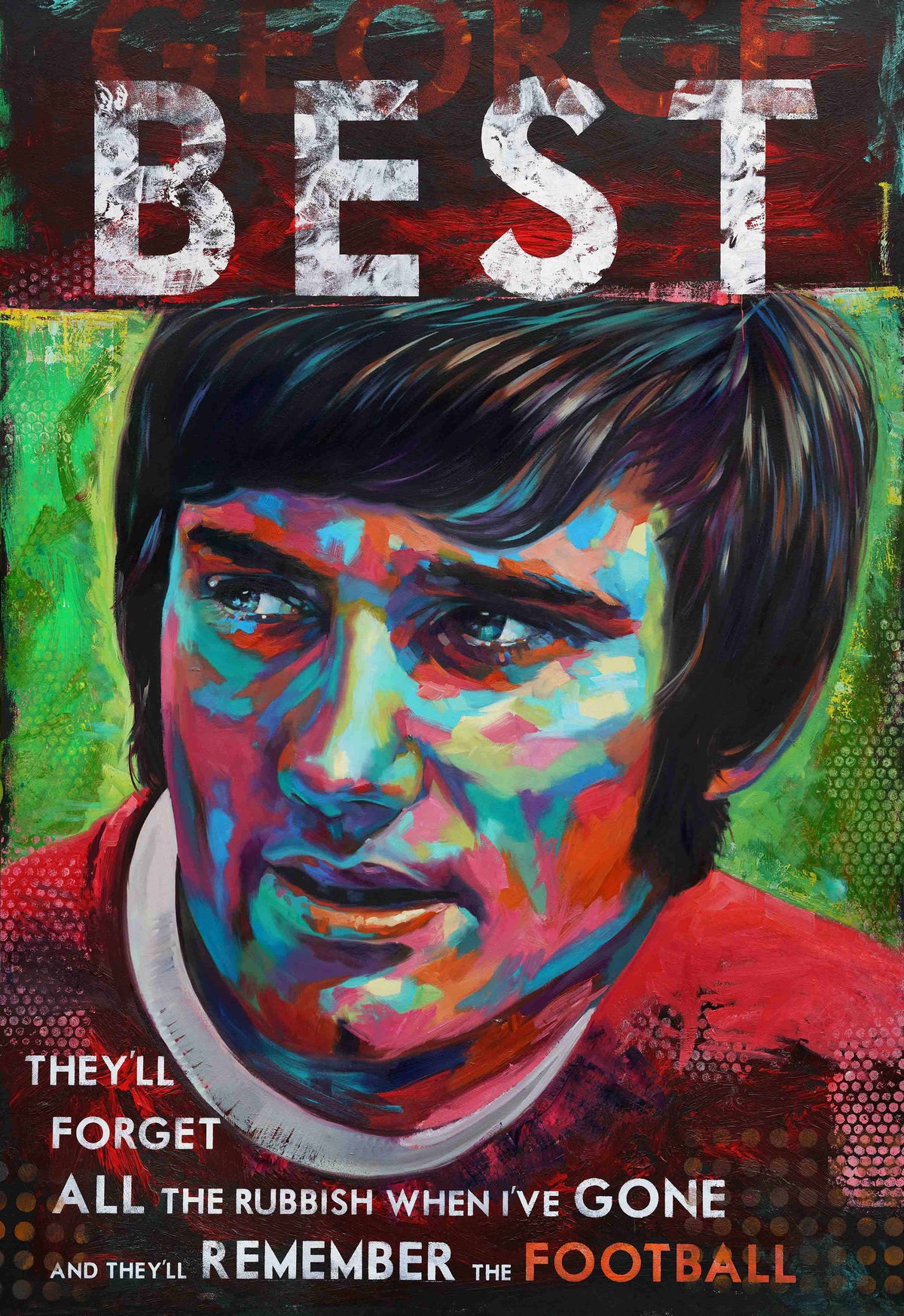A Giclée print taken from the artist's original, bold, expressive painting of the football legend George Best.